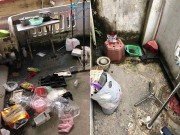 Căn phòng ngập ngụa rác rưởi, góc bếp ẩm ướt, đen ngòm khiến người nhìn vào phát hoảng.