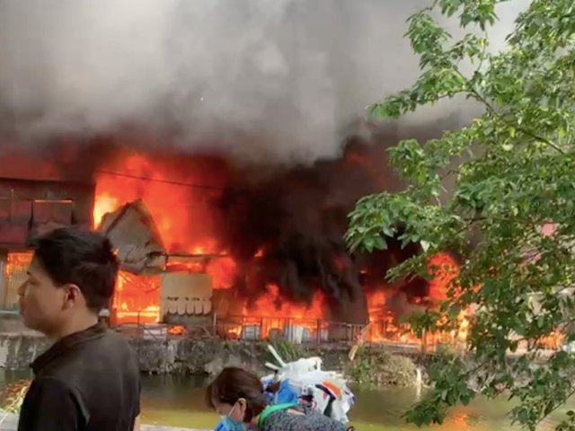 Hà Nội: Cháy ngùn ngụt ở cơ sở sản xuất chăn ga, gối đệm