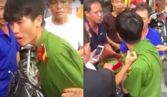 Nghi ngờ nam thanh niên mặc sắc phục là công an "dởm", nhiều người đã bao vây, tát vào mặt anh này.