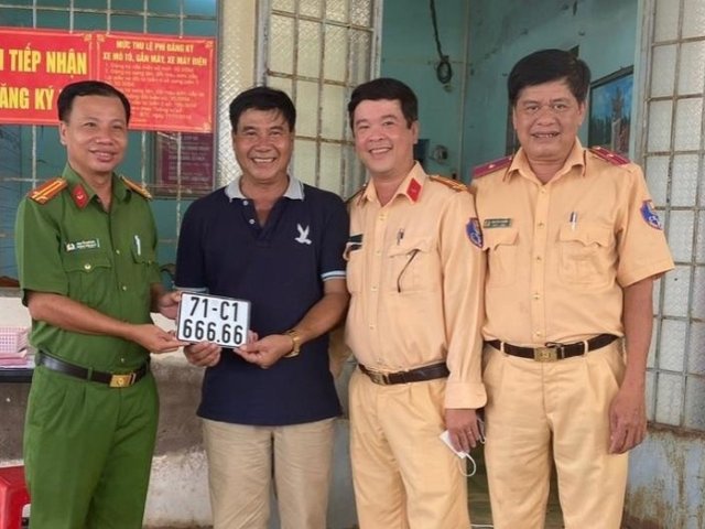 Trong ngày đầu tiên Bộ Công an triển khai thủ tục đăng ký xe tại công an xã, thị trấn, người đàn ông ở Bến Tre may mắn bấm được biển kiểm soát 71C1-666.66.