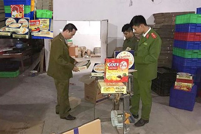 Khoảng 4.000 hộp bánh kẹo làm nhái các thương hiệu nổi tiếng đang được bán chạy trên thị trường được phát hiện tại một kho hàng ở Hoài Đức, Hà Nội.