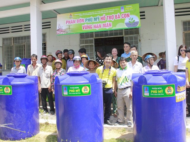 Công đoàn PVFCCo Tặng bồn nước cho bà con vùng hạn mặn Bến Tre