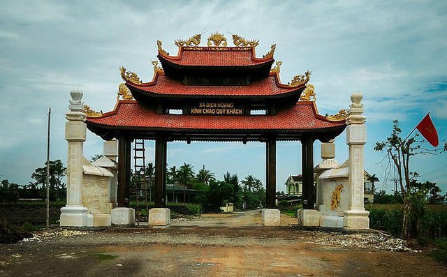 Cổng làng mới khánh thành ở xã Diễn Hoàng (Nghệ An) cao 4,8m, rộng 5,5m, trị giá 4 tỷ đồng.