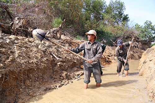 Công nhân đào mương, đắp đập để lấy nước sạch cho 30.000 hộ dân