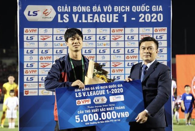 Công Phượng lần đầu tiên nhận cú đúp giải thưởng cầu thủ xuất sắc nhất và bàn thắng đẹp nhất tháng ở V-League.