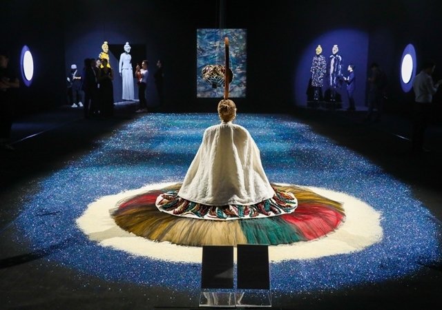 Ở gian phòng mang tên "Lúa", khán giả ấn tượng với sự kết hợp âm thanh, ánh sáng và màu sắc tạo cảm giác như ngôi đền nghệ thuật.