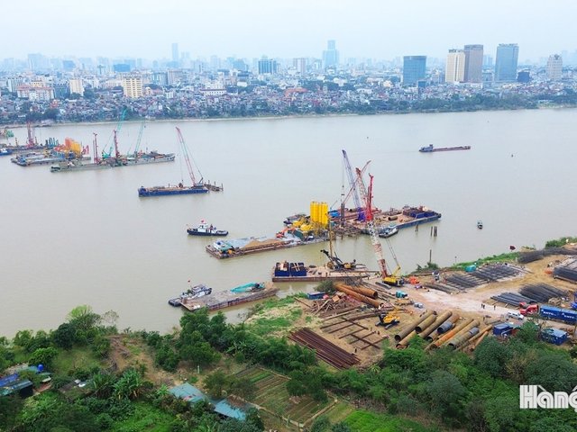 Các dự án cầu bắc qua sông Hồng đều thi công đến những ngày cuối cùng của tháng Chạp năm Ất Tỵ. Trên công trường, hàng nghìn kỹ sư, công nhân của các đơn vị tư vấn, nhà thầu tổ chức thi công “3 ca, 4 kíp”, tranh thủ từng ngày khi thời tiết thuận lợi để đẩy nhanh tiến độ thi công.