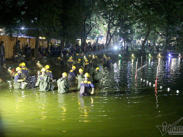 200 công nhân trắng đêm nạo vét hồ Hoàn Kiếm