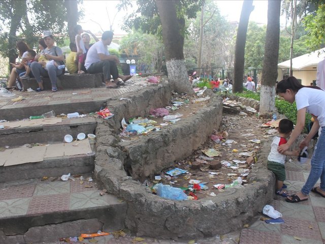 Cùng với hình ảnh đông đúc, chen chúc của dòng người những ngày nghỉ lễ tại Hà Nội, tình trạng người về, rác ở lại khiến nhiều người tỏ ra ngán ngẩm.