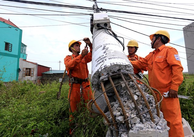 Công nhân thay thế 2.600 cột điện đổ sau bão