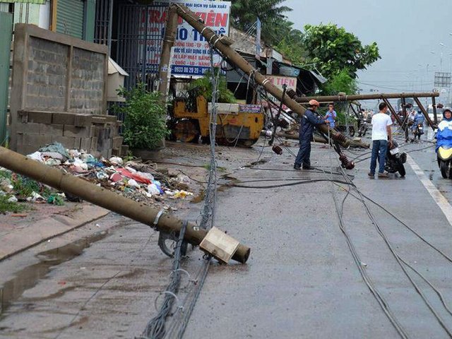 - Hàng loạt cột điện dọc trên quốc lộ 51 qua 2 tỉnh Bà Rịa – Vũng Tàu và Đồng Nai bị giông lốc quật ngã la liệt.