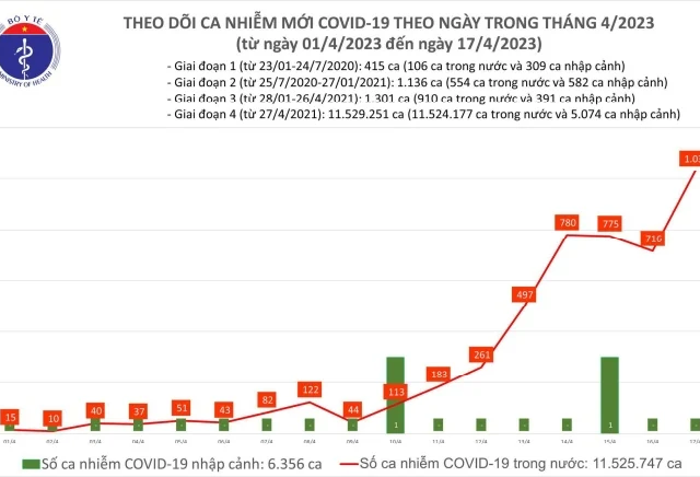 Ngày 17/4, cả nước ghi nhận hơn 1.000 ca COVID-19, cao nhất từ đầu năm đến nay