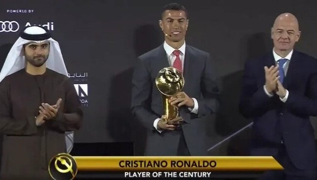 Ronaldo vượt qua Lionel Messi và Mohamed Salah để được vinh danh. Tiền đạo 35 tuổi nhận danh hiệu từ Chủ tịch hội đồng thể thao Dubai Mansoor Al Maktoum. Xuất hiện trên bục vinh danh Ronaldo còn có Chủ tịch FIFA Gianni Infantino.