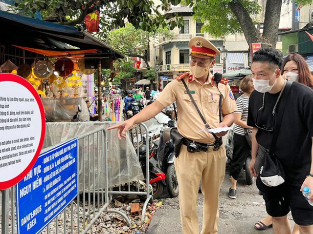 Ngày 24/9, Phòng CSGT Công an TP Hà Nội tổ chức phát tờ rơi song ngữ Anh - Việt để tuyên truyền, nhắc nhở du khách và người dân thực hiện nghiêm quy định an toàn tại khu vực “Phố Cafe đường tàu”.