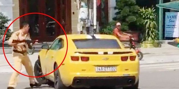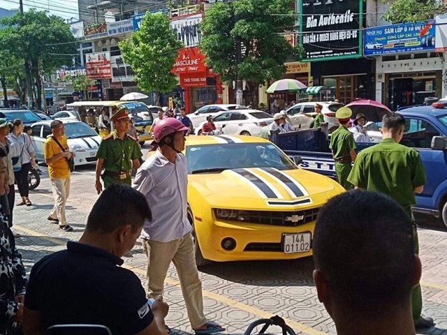 CSGT Quảng Ninh dùng súng đập vỡ kính ô tô: Xe thể thao Chevrolet Camaro đã hết hạn đăng kiểm từ tháng 7. Chủ xe này là em một đại gia tại Quảng Ninh.