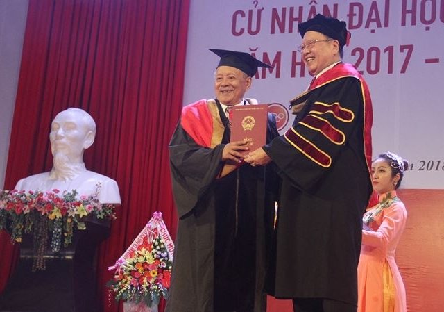 Sau 3 năm học tập vất vả, cụ ông ở tuổi "gần đất xa trời" đã được nhận bằng thạc sĩ.