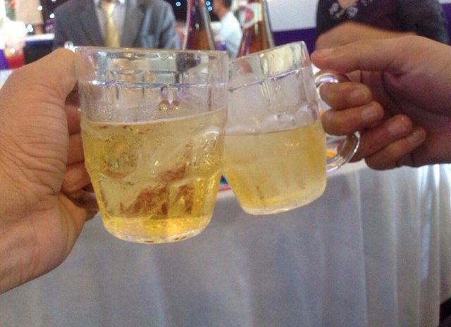 Có nhiều anh chàng không những 'dô dô' nốc cạn trăm phần trăm với khách cùng bàn, mà còn dạo khắp các bàn trong tiệc cưới để nâng ly. Để rồi không lâu sau đó, khi tiệc chưa tàn đã chân thấp chân cao bước đi xiêu vẹo.