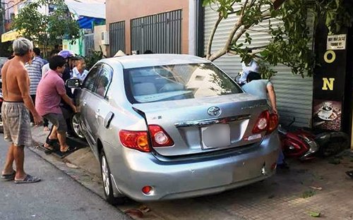 Đưa ôtô bốn chỗ từ nhà ra đường, nữ tài xế để xe vọt qua đường, tông vào dàn xe máy trước quán cà phê.