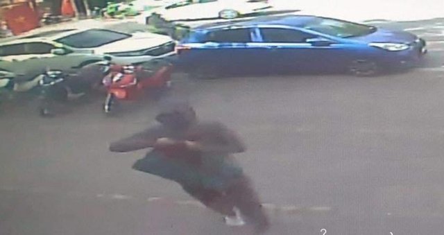 Người đàn ông mặc áo đồng phục của tài xế Grab dùng súng khống chế nhân viên ngân hàng BIDV (Phúc Thọ, Hà Nội) để cướp tiền.