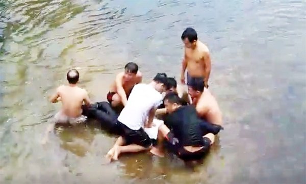 Nghe tiếng kêu cứu thất thanh, ngay lập tức, cả hai thầy chạy lại thì chỉ thấy hai cánh tay chới với dưới khu vực nước sâu, liền nhảy xuống cứu vớt.