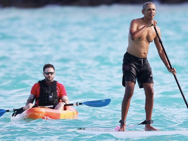 Obama cưỡi sóng, khoe thân hình săn chắc