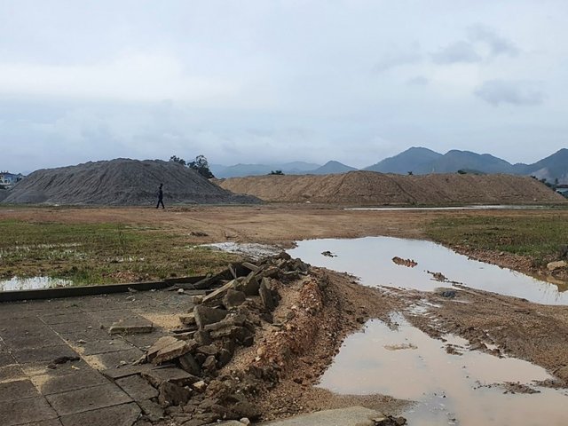 Một “núi” đá, cát được tập kết trái phép trên phần đất thuộc dự án xây dựng khu dân cư tại xã Phước Lộc (huyện Tuy Phước, Bình Định), gây ô nhiễm môi trường khiến người dân bức xúc.