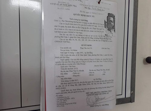 Công an Đà Nẵng treo quyết định truy nã Vũ \'nhôm\' ở trụ sở phường