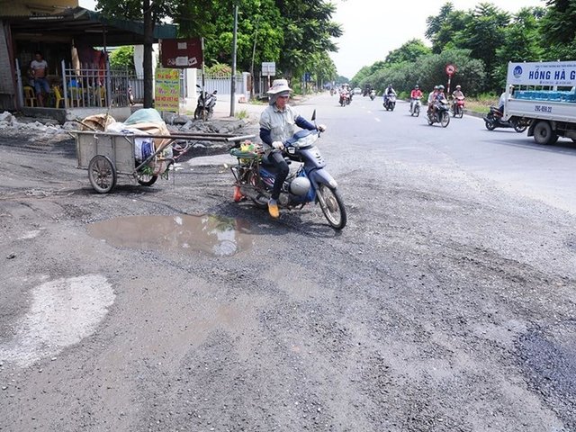 Hàng loạt ổ voi, ổ gà xuất hiện trên Đại lộ Thăng Long Hà Nội khiến cho người dân vô cùng bức xúc. Nguyên nhân được cho là các xe tải và các trạm trộn bê tông, công ty xây dựng ven đường gây ra.