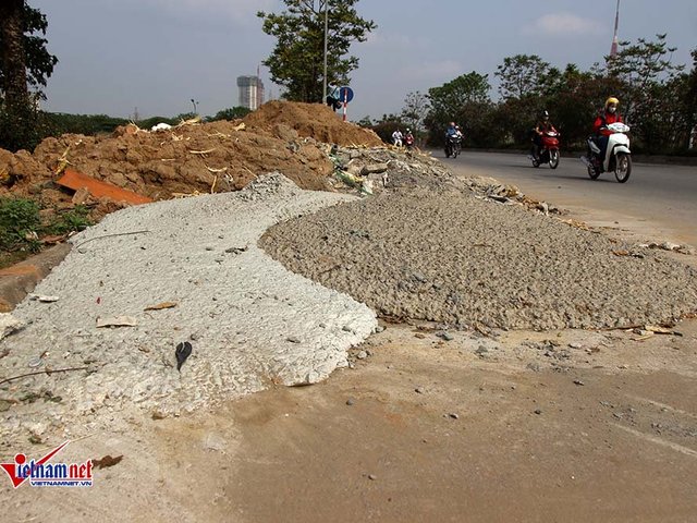 Xuất hiện tình trạng đường gom, tránh đang bị “cày nát” ở Đại lộ Thăng Long