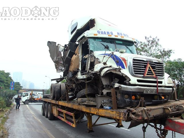 Chùm ảnh: Tai nạn trên đại lộ Thăng Long gây tắc nghẽn kinh hoàng