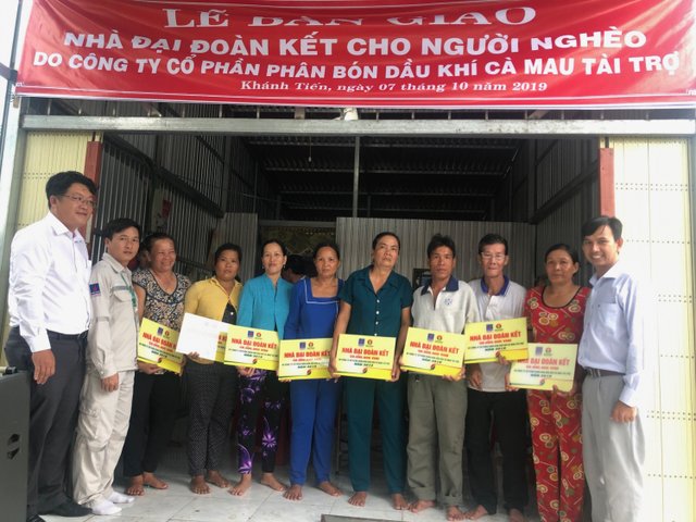 Ngày 7/10, Công ty cổ phần Phân bón Dầu khí Cà Mau (PVCFC) đã phối hợp với huyện U Minh tổ chức Lễ bàn giao 10 căn nhà Đại đoàn kết cho 10 hộ nghèo ở xã Khánh Tiến, huyện U Minh, tỉnh Cà Mau.