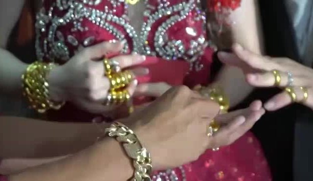 Clip ghi lại cảnh cô dâu, chú rể được người thân trao tặng rất nhiều vàng khiến ai cũng phải trầm trồ ghen tị.