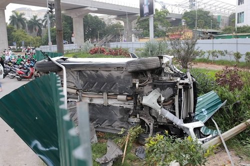 Ôtô đâm bốn xe máy vượt ngã tư ở Hà Nội