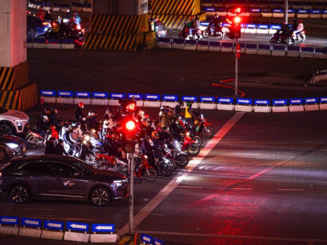 Nửa đêm lạnh 13°C, dân Hà Nội vẫn xếp hàng chờ đèn đỏ đều tăm tắp