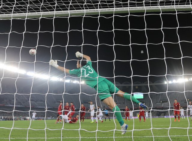 Tin nhanh Cúp bóng đá châu Á:Thủ môn của Việt Nam đã đứng đúng vị trí nhưng phản ứng hơi chậm trong tình huống cầu thủ Iraq đá phạt, ở Asian Cup tối qua.