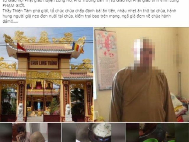 Ban Trị sự Giáo hội Phật giáo Việt Nam tỉnh Vĩnh Long đang xác minh thông tin tố cáo sư trụ trì chùa Long Thành "chứa chấp đánh bài, kiếm trai bao trên mạng".