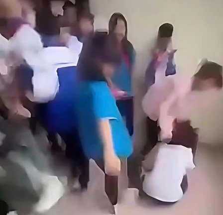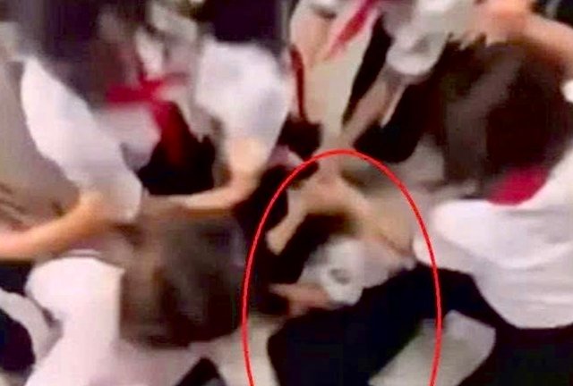 Một nữ sinh bị nhóm bạn vây đánh hội đồng dã man, kèm những lời mắng chửi thô tục, rất đông học sinh xung quanh chứng kiến lại reo hò, cổ vũ mà không can ngăn.