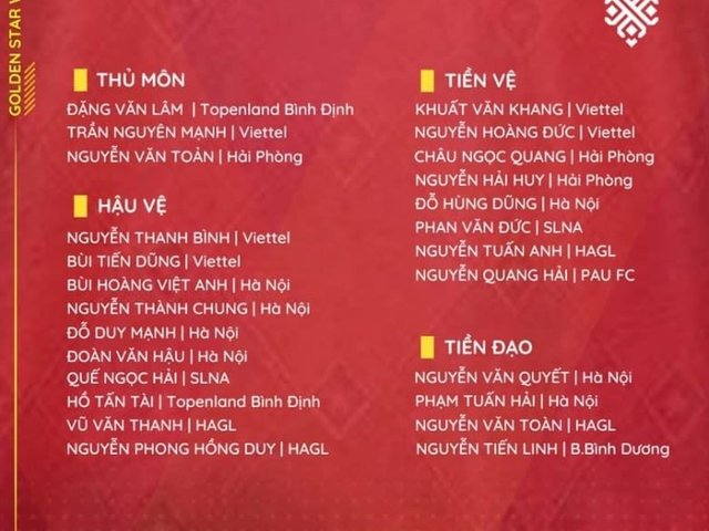 Quân số hiện tại của đội tuyển Việt Nam là 25 và sẽ được gút lại còn 23 trước trận đấu gặp Lào.