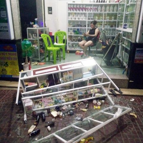 Ông Nam cho biết, tủ đựng mỹ phẩm bị đổ vỡ là do vợ ông sơ suất đụng tay vào, không phải do ông đập phá.