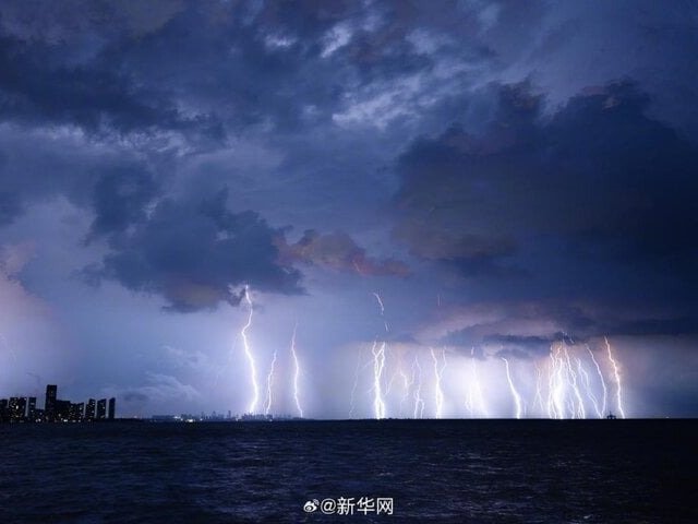 Theo Tân Hoa Xã, rạng sáng 5/9, đã xuất hiện loạt trận sấm sét lớn ngoài khơi thành phố Hải Khẩu, Hải Nam như báo hiệu siêu bão Yagi sắp đổ bộ.