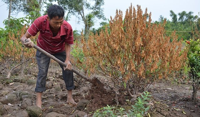 Những người trồng đào, quất tại Nam Định, Thái Bình phục vụ Tết cho cả vùng duyên hải phía Bắc năm nay đang lâm vào cảnh trắng tay vì cây chết hàng loạt.