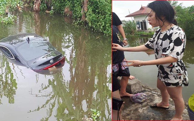 Khi đi trên đường làng, cô gái lái xe ô tô đã nhấn nhầm chân phanh sang chân ga, khiến cả 5 người lao xuống một con mương ở vệ đường.