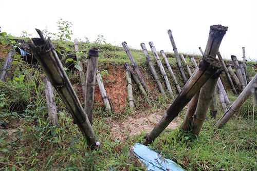 Đập thủy lợi Triệu Thượng 2 ở Quảng Trị bị trượt sạt gần 80m hơn năm qua, có nguy cơ vỡ đập, nhưng chỉ được gia cố bằng cọc tre, bao tải cát.