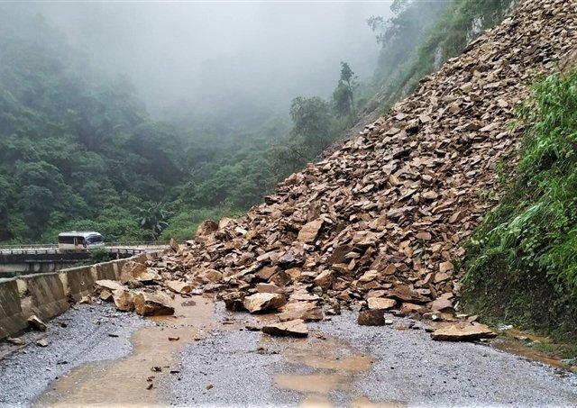 Hà Tĩnh: Đất đá sạt lở chắn ngang đường lên cửa khẩu Cầu Treo