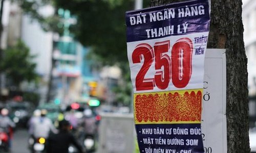 Tờ rơi, pa nô quảng cáo đất nền ngân hàng thanh lý giá 250-319 triệu đồng ồ ạt xuất hiện tại TP HCM trước thềm xuân Mậu Tuất.