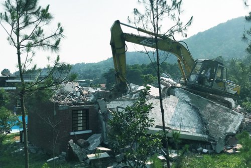 Một tháng sau khi kết luận thanh tra được công bố, những công trình vi phạm trên đất rừng ở huyện Sóc Sơn bắt đầu bị phá dỡ.