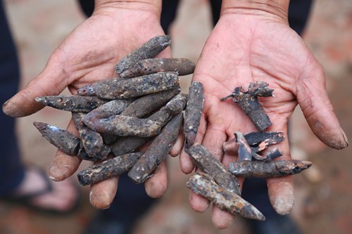 Hai tấn đầu đạn chất đống giữa vườn