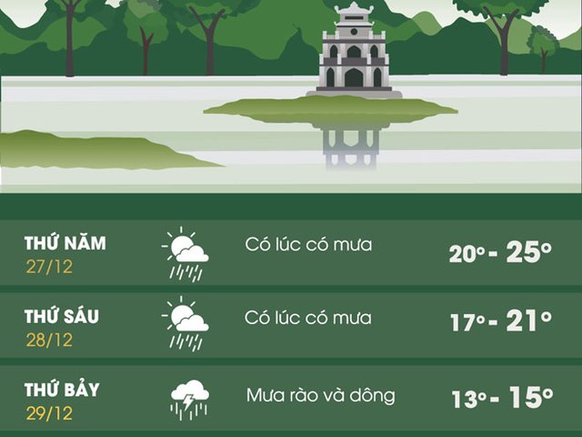 Hôm nay (27/12), không khí lạnh sẽ ảnh hưởng yếu đến các tỉnh phía Đông Bắc Bộ, sau đó sẽ tăng cường mạnh hơn khiến miền Bắc chìm trong giá rét, có nơi nhiệt độ xuống dưới 3 độ C.