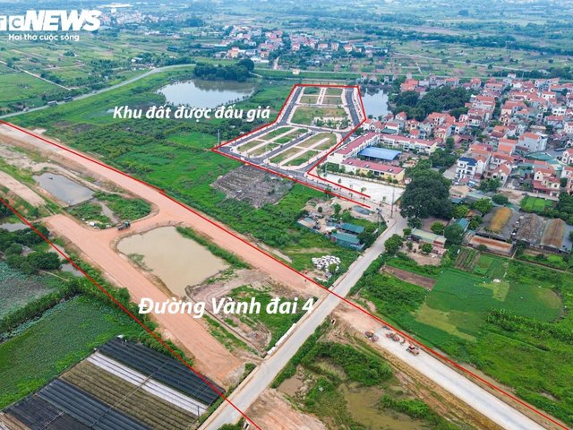 Khu đất 19 lô LK03 - LK04 ở thôn Lòng Khúc (Hoài Đức, Hà Nội) nằm cạnh tuyến đường vành đai 4, có giá trúng cao bất thường 133,3 triệu đồng/m2, gấp 18 lần khởi điểm.