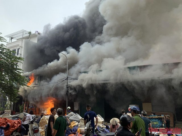 Cháy lớn kèm tiếng nổ ở dãy kho xưởng tại Đền Lừ